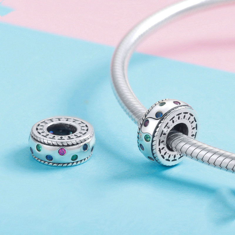 Bring joyful color and effortless coordination to your bracelet with our Beaded Charm Spacer in 925 Sterling Silver. Featuring vibrant rainbow or multi-color beads, this versatile accessory adds a playful hint of color while keeping your charms perfectly spaced. A fun, eye-catching essential for every Charmed Life Era stack.