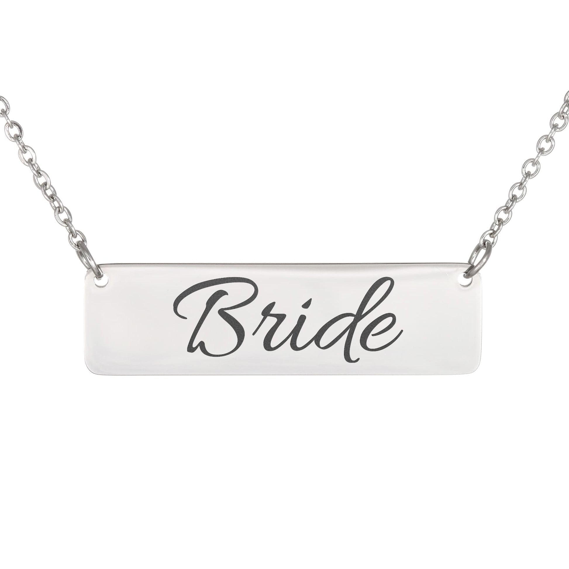 Bride Engraved Horizontal Bar Necklace by Charm & Dazzle