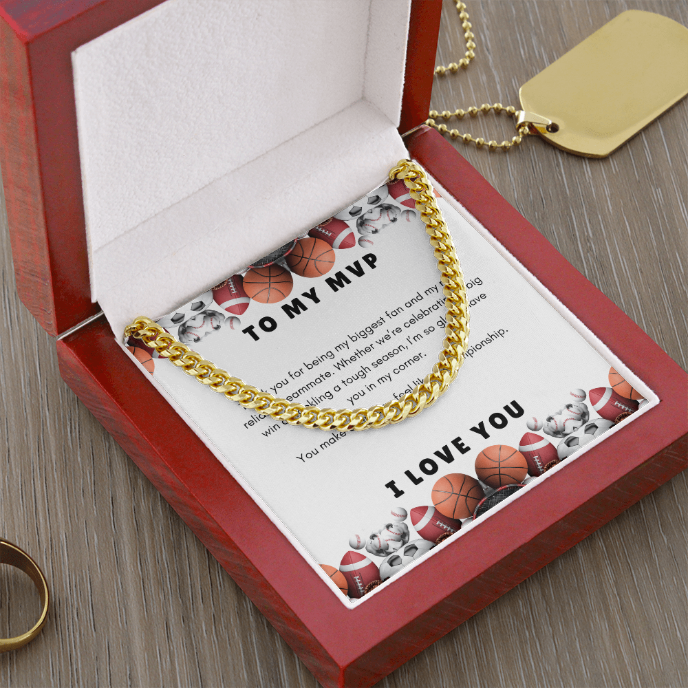 Men's Cuban Link Chain Necklace | Gift for Him To My MVP | Sports Themed Message Card