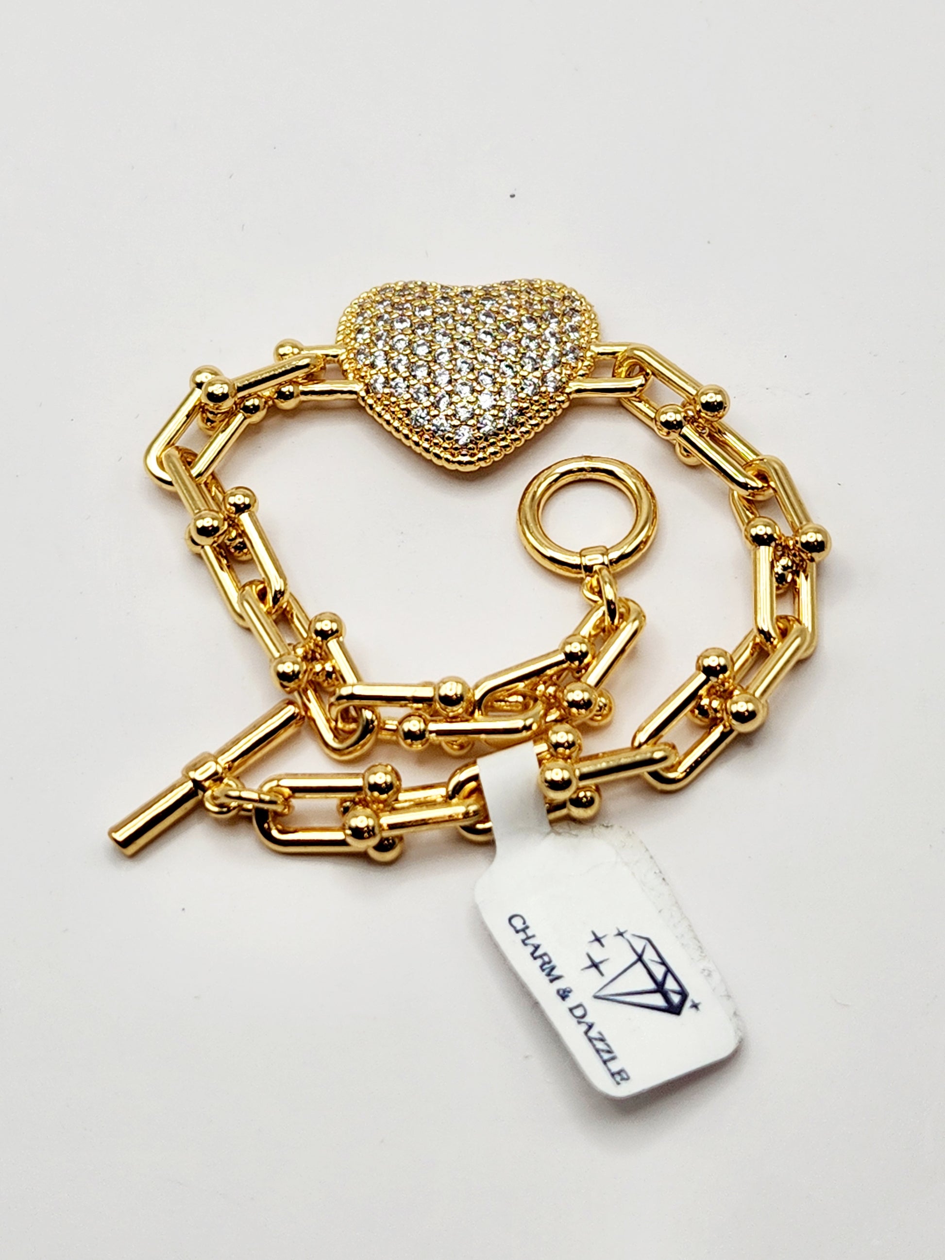 The Twinkling Heart Charm Bracelet is a beautiful piece that is sure to add some sparkle to any outfit. The cubic zirconia stones paired with the 18k gold plating make this bracelet a beautiful addition to your jewelry collection. Perfect for any occasion, this bracelet is the perfect way to add a touch of charm and glamour to your look.