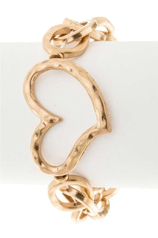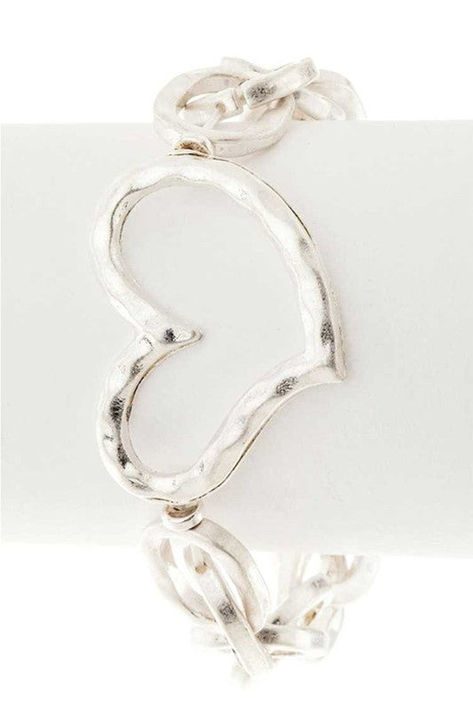 Hammered Heart Charm Stretch Bracelet