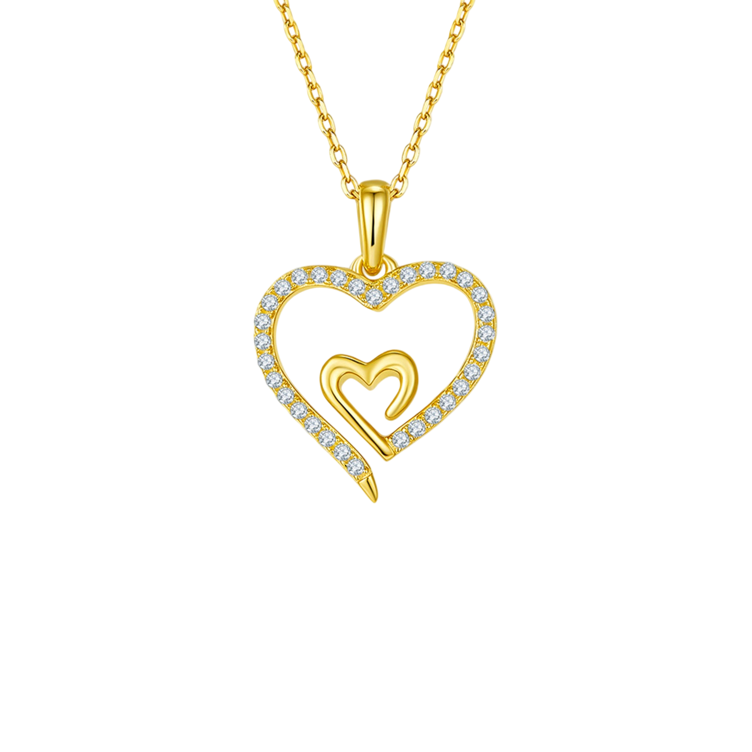 This Heart to Heart Pendant Necklace features a charming double heart design, adding a touch of sophistication and elegance to any outfit. Made with high-quality materials including 925 sterling silver, Moissanite, and Rose gold-plated or Gold-plated, this necklace is a timeless piece that will last for years to come. The pendant also boasts a 0.32 carat weight, making it a stunning and eye-catching accessory.