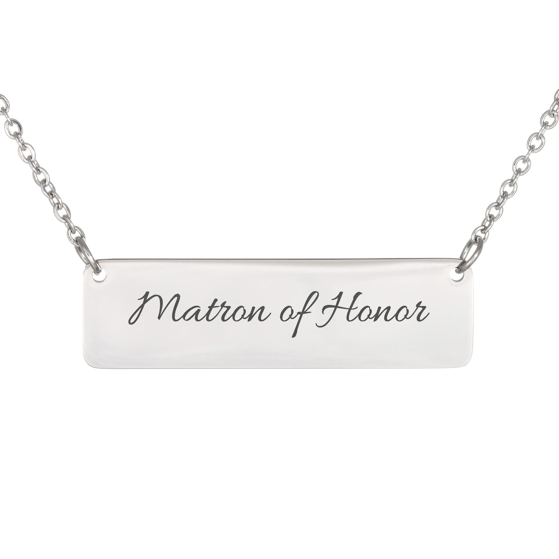 Matron of Honor Engraved Horizontal Bar Necklace