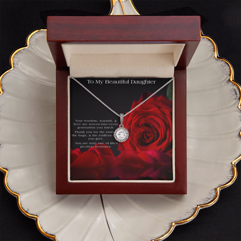 To My Beautiful Daughter Tribute | Red Rose Themed Gift Box | CZ 14K Pendant Necklace