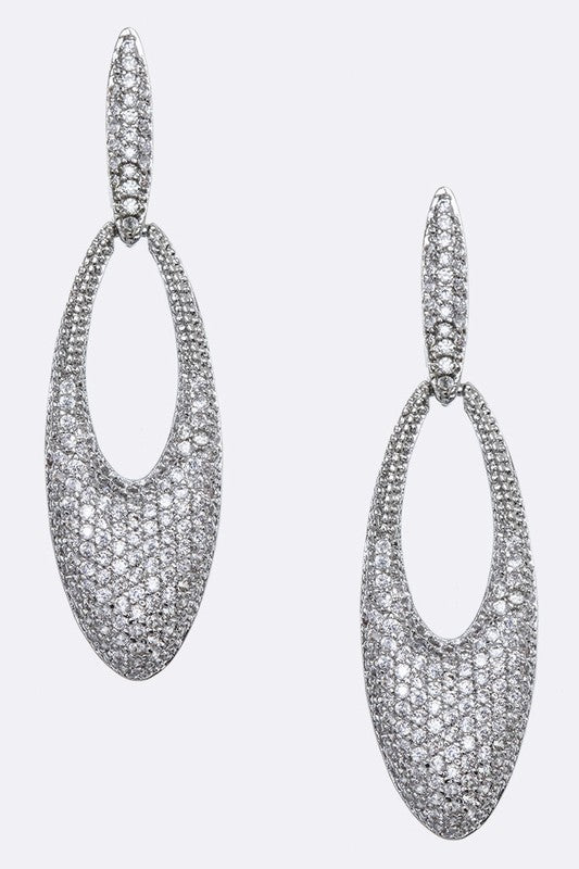 Experience a touch of glamour with our Illuminating Oval Drop Earrings. At a 1.65 inch drop, these earrings feature sparkling cubic zirconia stones that capture and reflect light, adding shine and radiance to any outfit. Keep it cute with these stunning and elegant earrings.