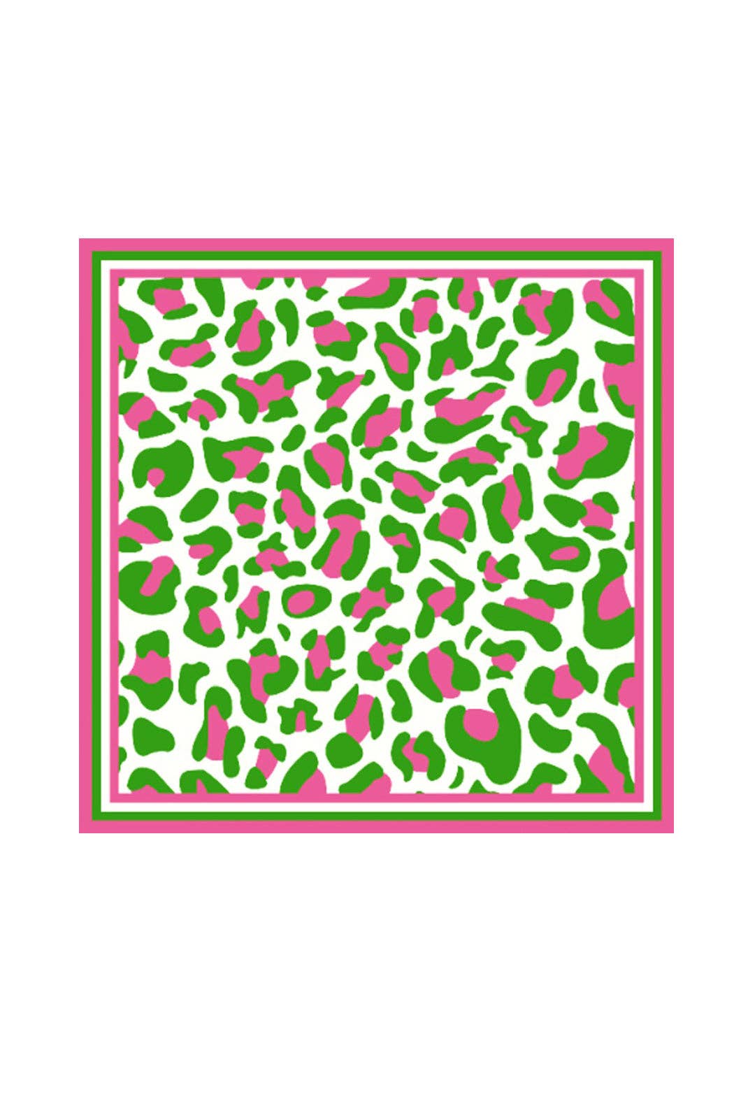 Add a touch of fun to any outfit with our Pink and Green Leopard Print Scarf! At 35' x 35", it's versatile and can be worn in multiple ways - as a hair accessory, around the neck, or on your bag. The soft satin material adds a luxurious feel. Go wild with your style!