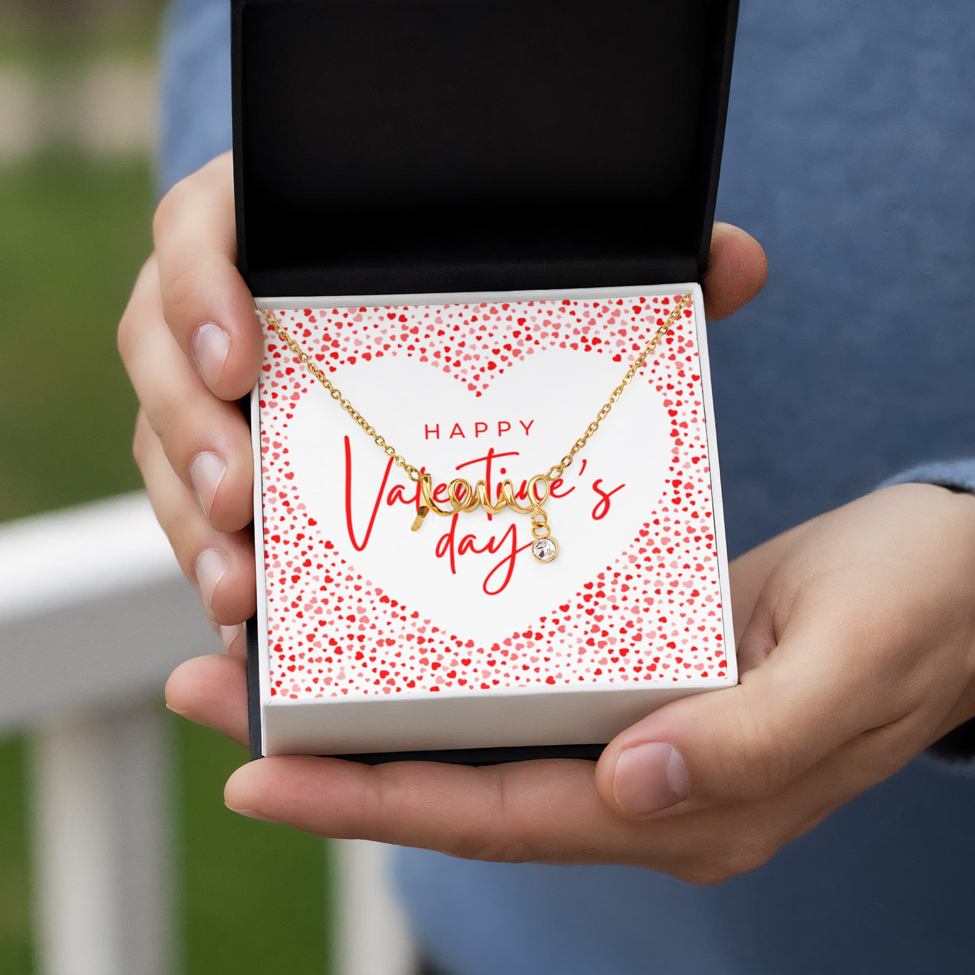 Valentine's Day Love Script Necklace | Romantic Hearts Edition | Gift Box for Her