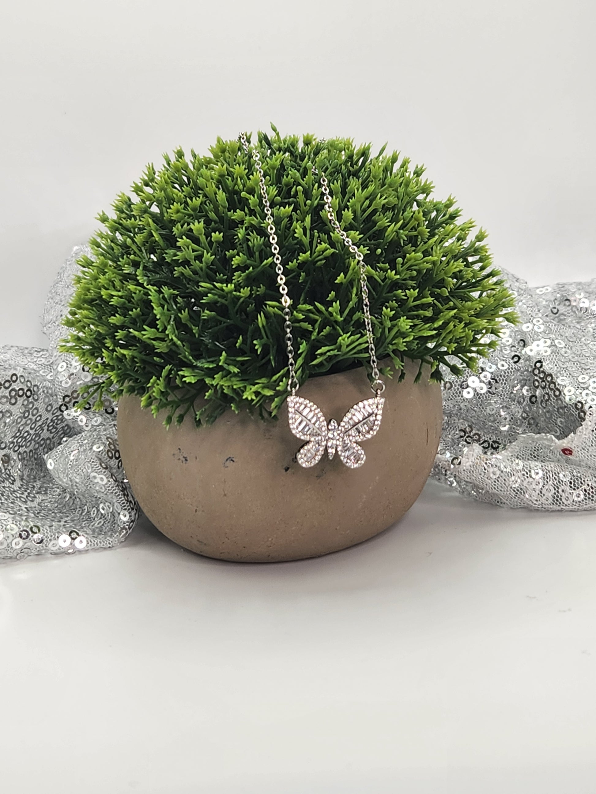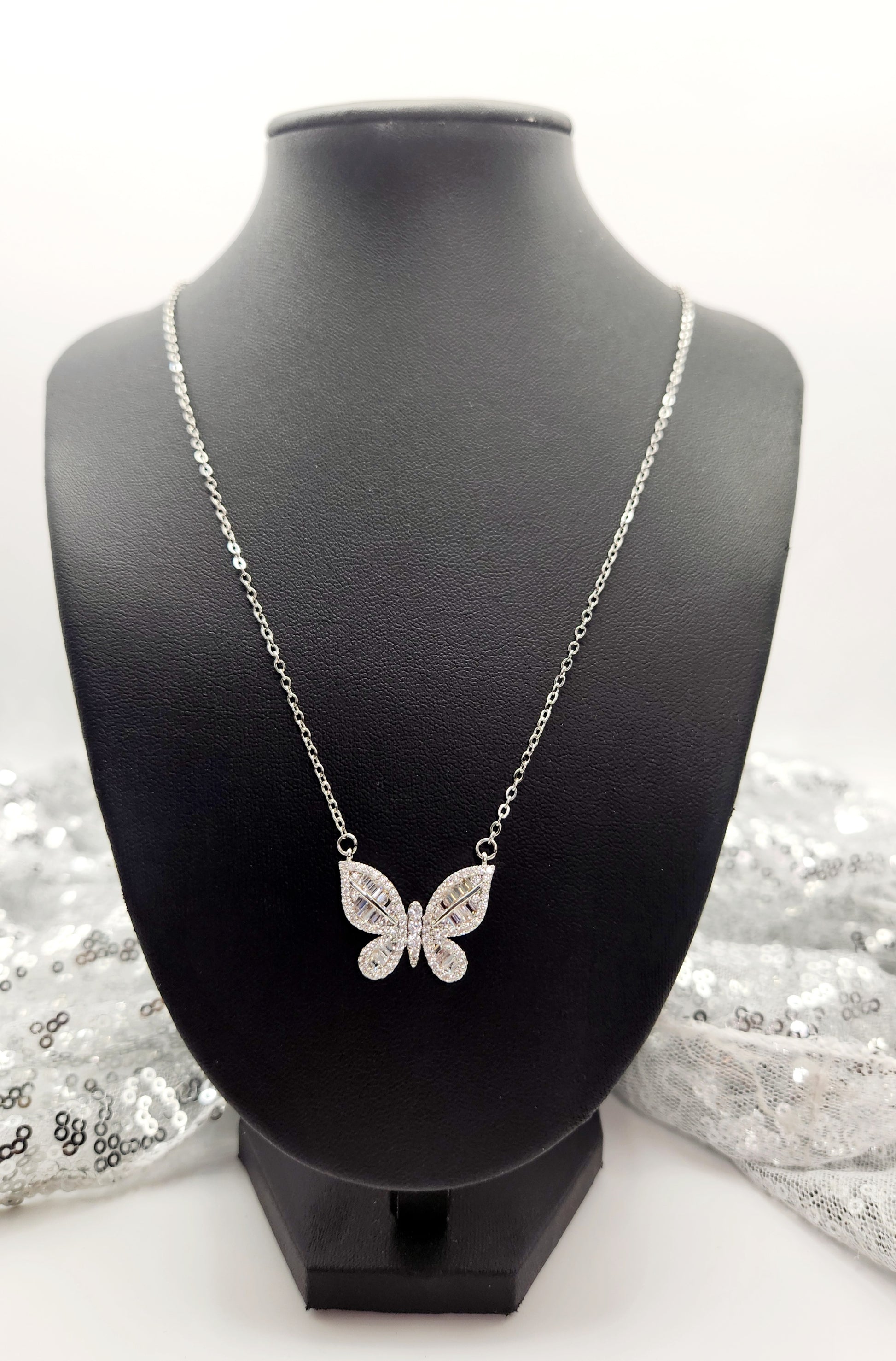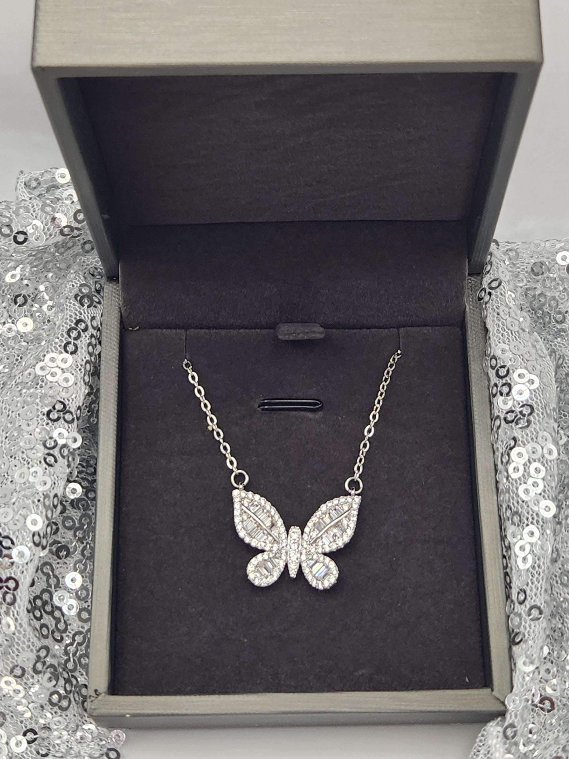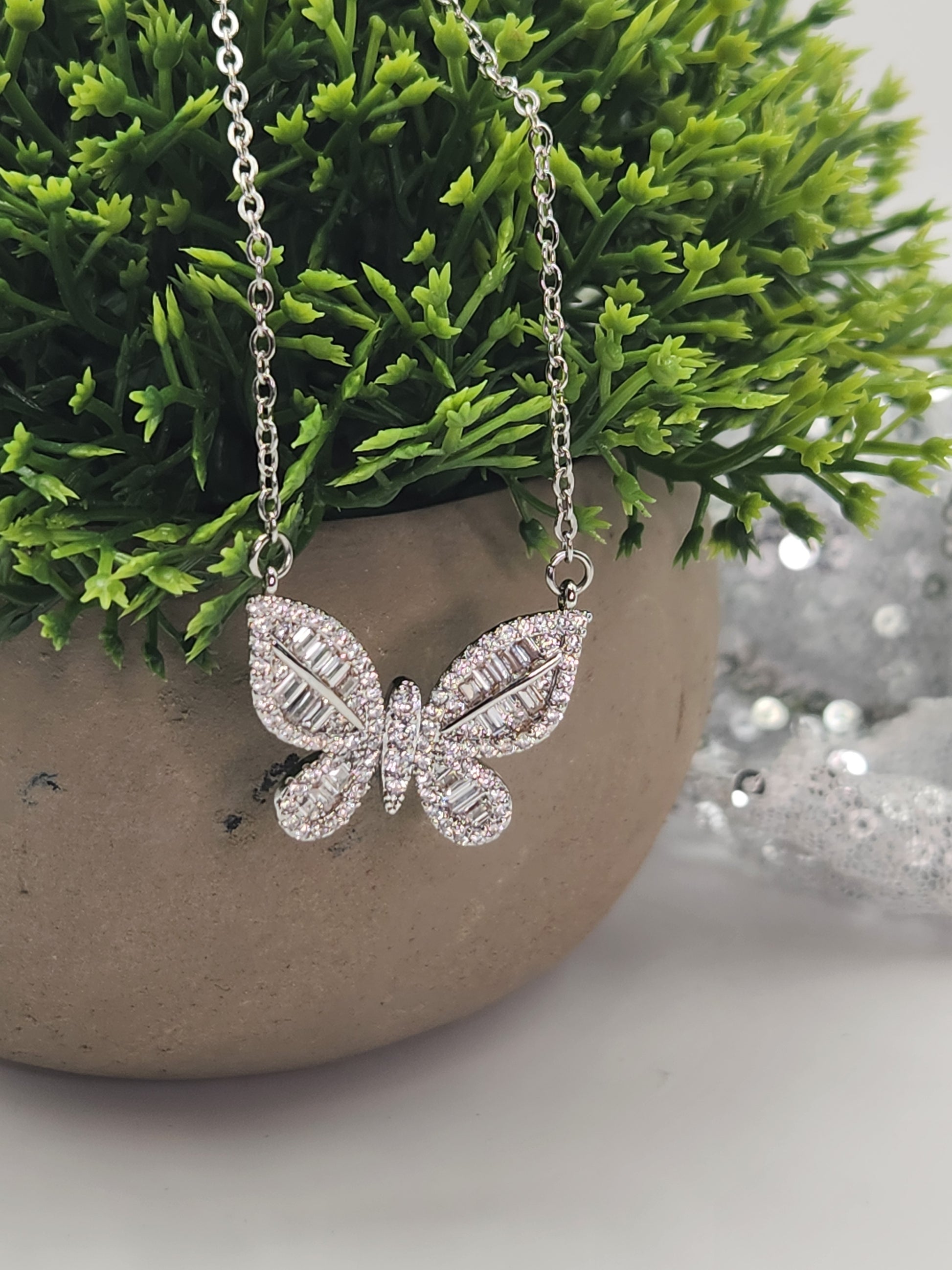 Twinkling Zircon Butterfly Necklace